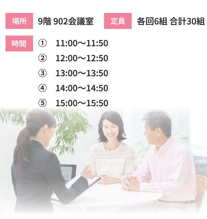 新NISAの活用や相続・贈与、シングルライフや60代のマネープランをテーマに、実際に金額を計算しながら学べる体験型講座です。