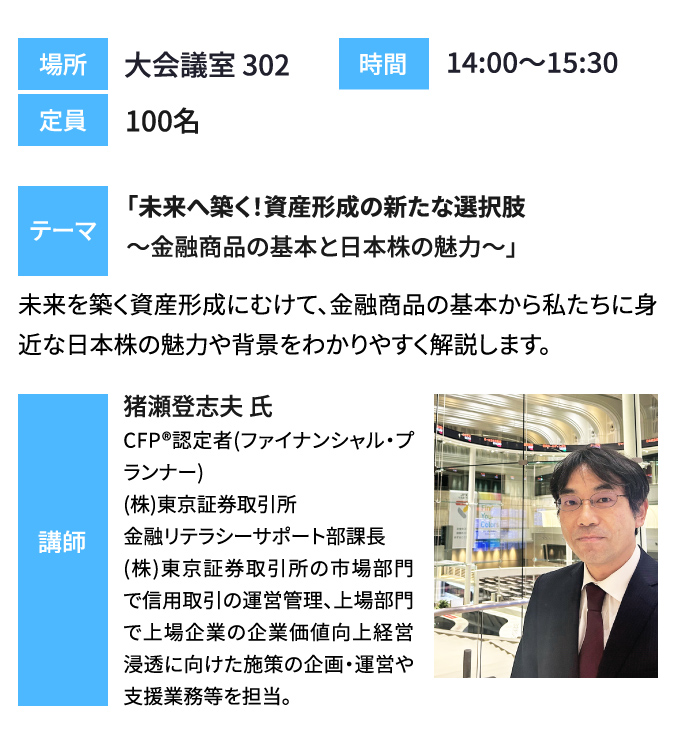 東京証券取引所の専門家によるセミナー!金融商品の基本から日本株の魅力まで、資産形成の新たな選択肢をわかりやすく学べる貴重なセミナーです
